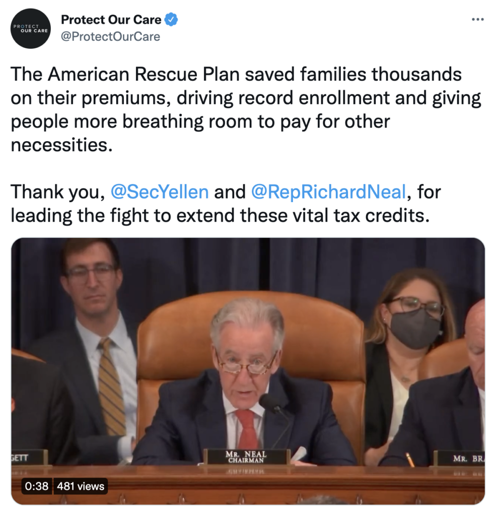 Secretary Yellen and Representative Neal urge Congress to extend tax credits to protect Americans from the rising cost of health care. Watch more here: