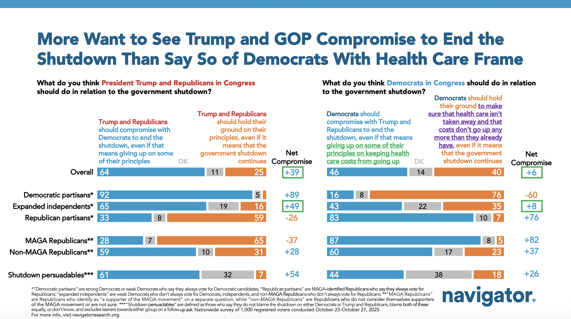 Republicans Should Permanently Extend The Tax Credits. 64 percent of Americans want Trump and Republicans to compromise with Democrats to end the shutdown, including 65 percent of independents.