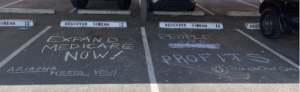 The event came after Protect Our Care joined local residents on Tuesday to urge Senator Sinema to do the right thing and support legislation to bring down drug prices with a mobile billboard and chalk art outside of her Phoenix office.