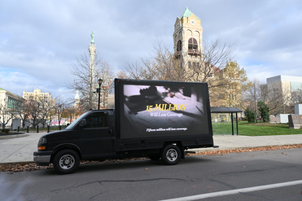 Mobile Billboard Tour Event with State Representative Heather Matson and Health Care Advocates in Des Moines, Iowa, targeting Rep. Nunn (Billboard Video Here)
