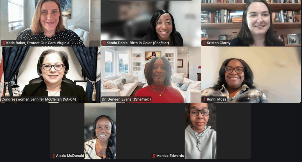 - Participants: Congresswoman Jennifer McClellan (D-VA-04), Executive Director Kenda Denia of Birth in Color, Parent storyteller Dr. Deneen Evans (PhD, LCSW of Roanoke), Parent storyteller Kristen Clardy of Washington D.C., ePTC recipient Ronni Moss